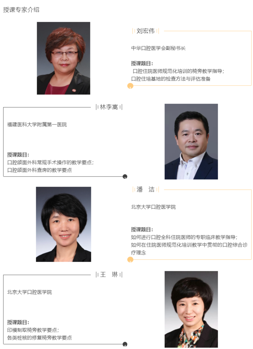 全国口腔医学专业住院医师规范化培训基地(科室)主任、教学副主任、教学秘书、指导教师或基地所在医院的院级领导和相关职能部门负责人。