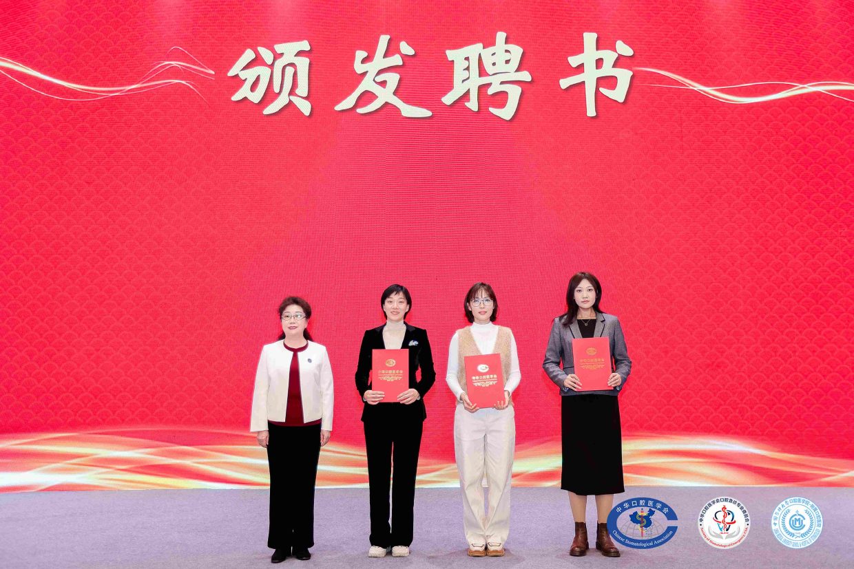 张英主委为学术秘书孙妍,工作秘书杨钰、彭川洋颁发聘书