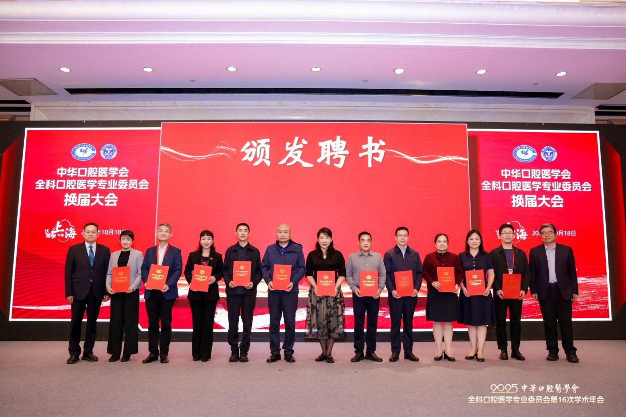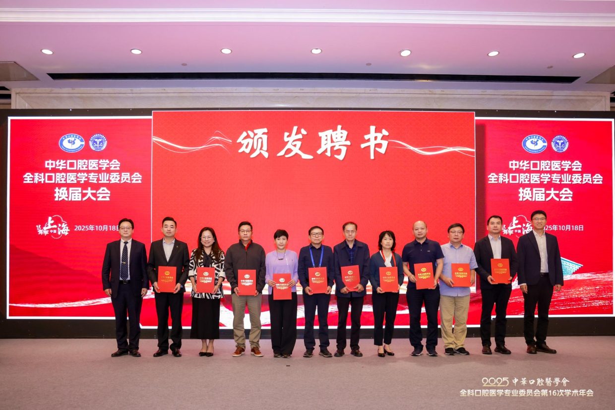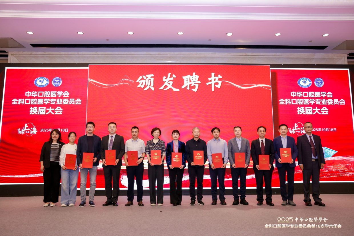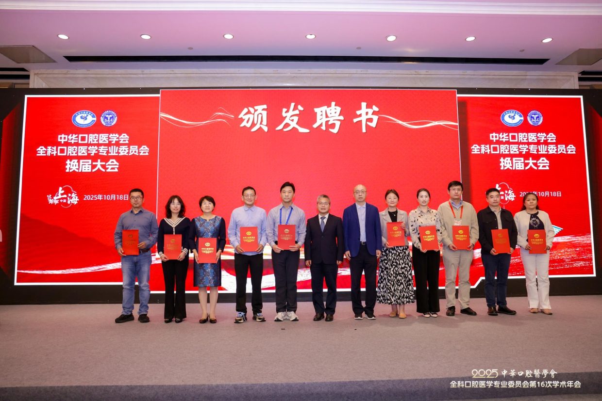 2025年10月18日,中华口腔医学会全科口腔医学专委会在上海召开换届大会。第六届专委会由200名委员组成,选举产生常委68名,上海交通大学医学院附属第九人民医院朱亚琴教授当选主任委员,候任主委为北京大学口腔医院邓旭亮教授,副主委为:王左敏、王霄、余优成、张东升、张晓东、张清彬、陈永进、袁泉。陈莉莉教授任前任主委。郭传瑸会长出席会议并讲话,对第五届专委会开展的各项活动表示肯定,希望第六届专委会在规范管理的前提下,充分发挥学术引领作用,加强对基层口腔全科医生的专业培训,探索AI诊疗、人工智能等新兴技术在全科口腔医学中的应用,不断推动学科和行业发展。常朝辉副秘书长主持换届大会。