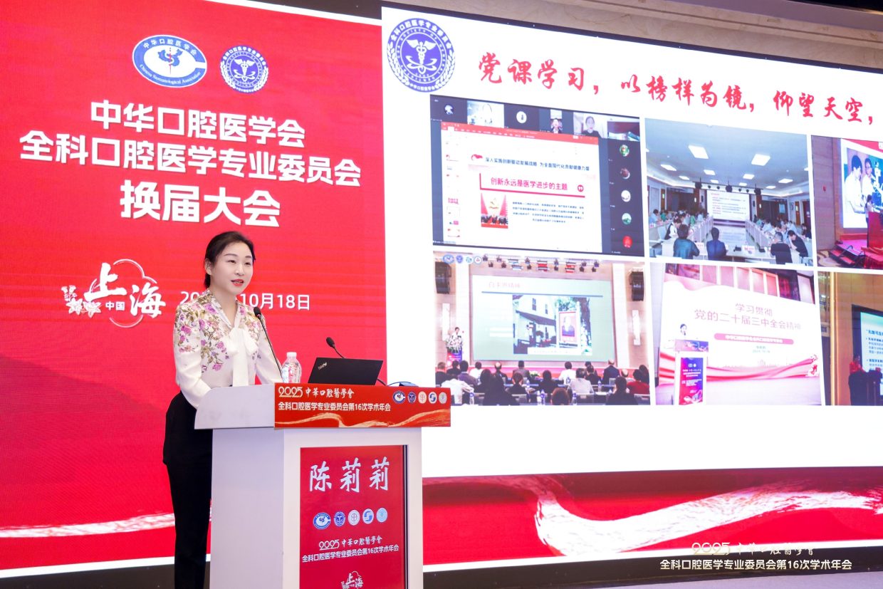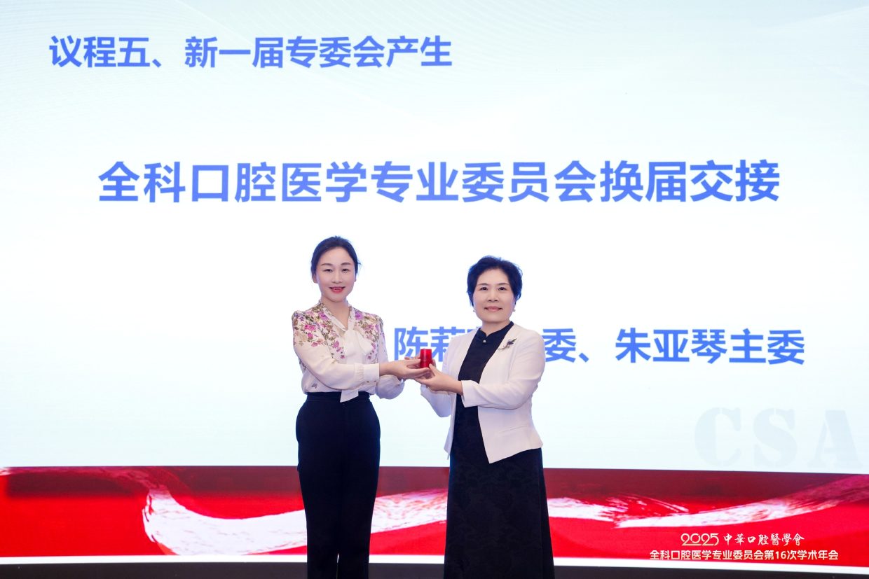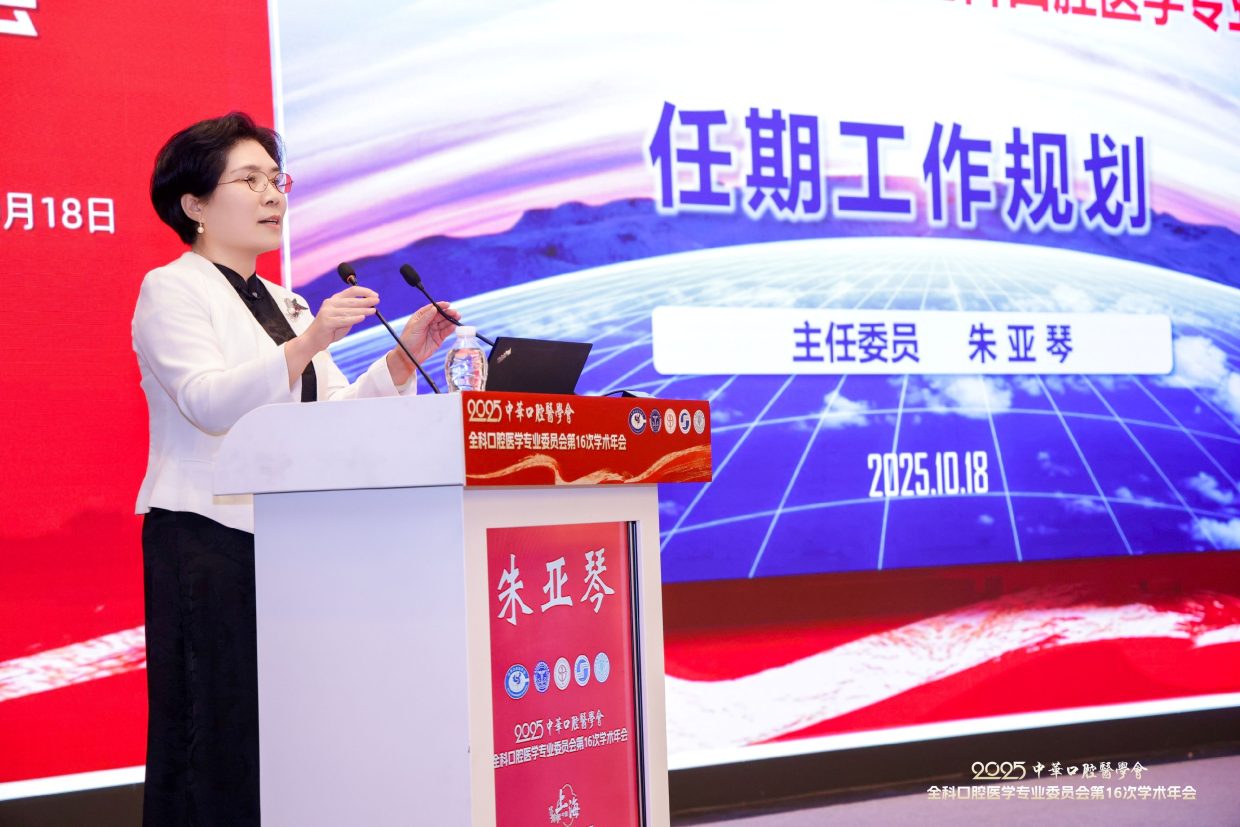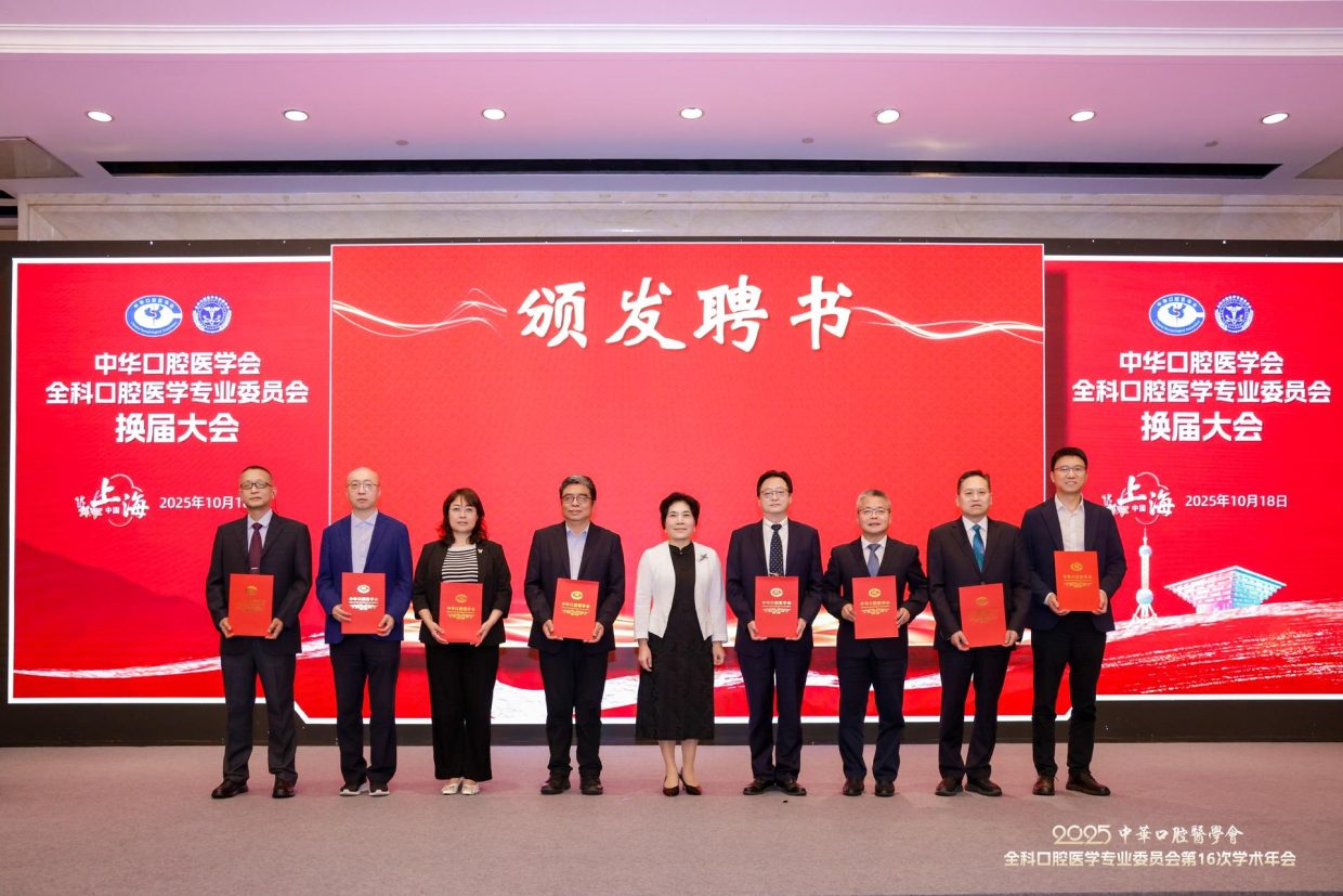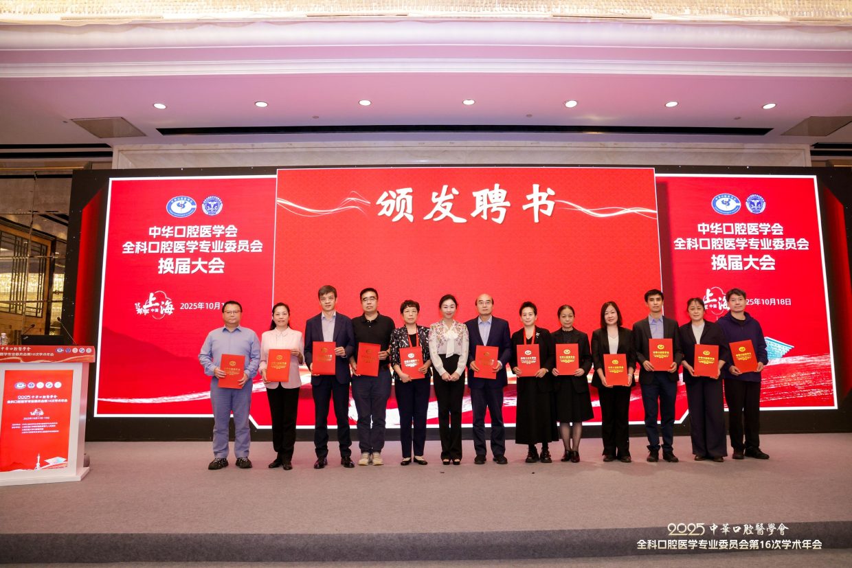 2025年10月18日,中华口腔医学会全科口腔医学专委会在上海召开换届大会。第六届专委会由200名委员组成,选举产生常委68名,上海交通大学医学院附属第九人民医院朱亚琴教授当选主任委员,候任主委为北京大学口腔医院邓旭亮教授,副主委为:王左敏、王霄、余优成、张东升、张晓东、张清彬、陈永进、袁泉。陈莉莉教授任前任主委。郭传瑸会长出席会议并讲话,对第五届专委会开展的各项活动表示肯定,希望第六届专委会在规范管理的前提下,充分发挥学术引领作用,加强对基层口腔全科医生的专业培训,探索AI诊疗、人工智能等新兴技术在全科口腔医学中的应用,不断推动学科和行业发展。常朝辉副秘书长主持换届大会。